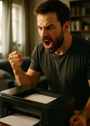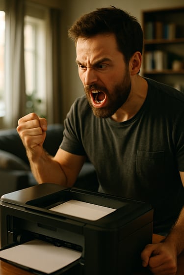 Ao final da atividade, faz-se as contas de quanto valeu todo o stress liberado. Não é preciso agradecer 😜📺🖨🖥🏺💥